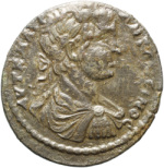 laureate, draped and cuirassed bust of Caracalla, right, seen from rear
