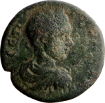 laureate, draped and cuirassed bust of Geta, right, seen from rear