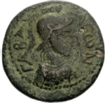 helmeted and cuirassed bust of Athena, right