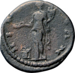 Homonoia standing facing, head left, holding cornucopia and patera over lighted altar