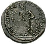 Athena or Roma seated left, holding small Nike on globe and resting arm on shield |