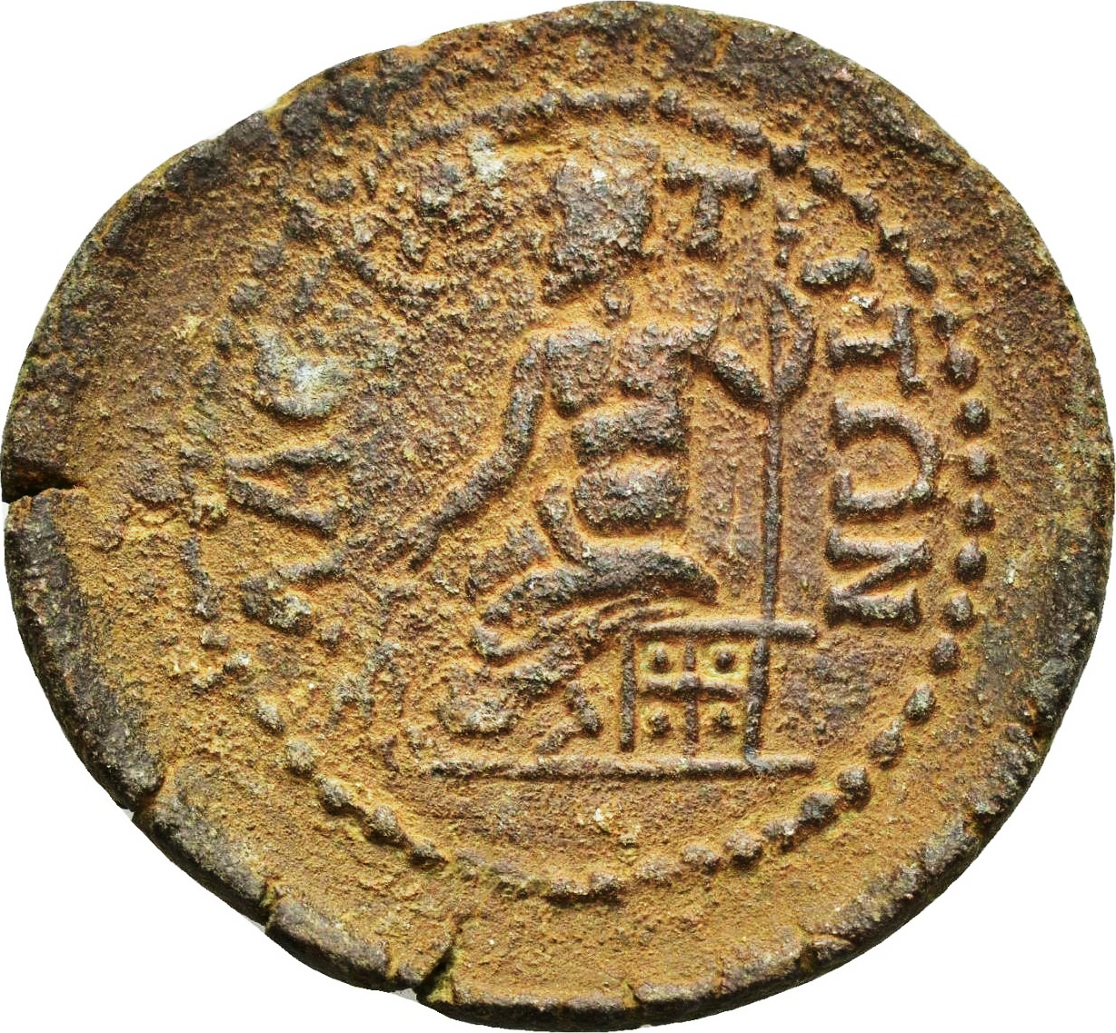 Zeus seated left, holding sceptre in left and extending right over eagle