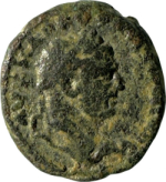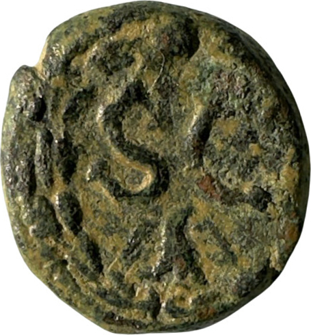 eagle standing facing, wings spread, head right; the all in laurel wreath