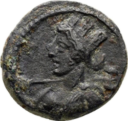 turreted and draped bust of Tyche of Kyme, left, seen from front