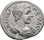 bare-headed cuirassed bust of Geta, with paludamentum on far shoulder, right, seen from front