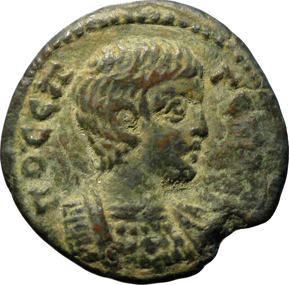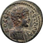 bare-headed and cuirassed bust of Geta, right, seen from front