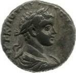 laureate, draped and cuirassed bust of Geta, right, seen from rear