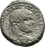 laureate head of Caracalla, right