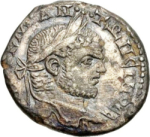 laureate head of Caracalla, right