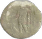 Zeus standing facing head left, holding patera and long sceptre; at his feet, eagle head right