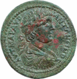 Septimius Severus standing right, holding spear, between Caracalla and Geta standing, holding spear |