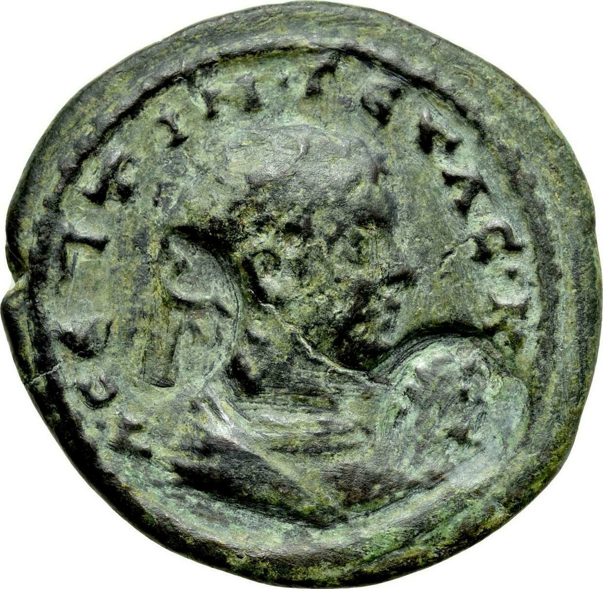 bare-headed cuirassed bust of Geta, right, seen from front