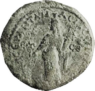 Tyche standing facing head left holding rudder in right and cornucopia in left |