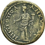 Tyche standing facing, head left, holding patera and cornucopia