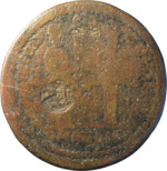 Tyche of Laodicea standing right, holding small statue of Zeus Laodiceus and transversal sceptre, facing Tyche of Ephesus standing left, holding small statue of Artemis Ephesia |