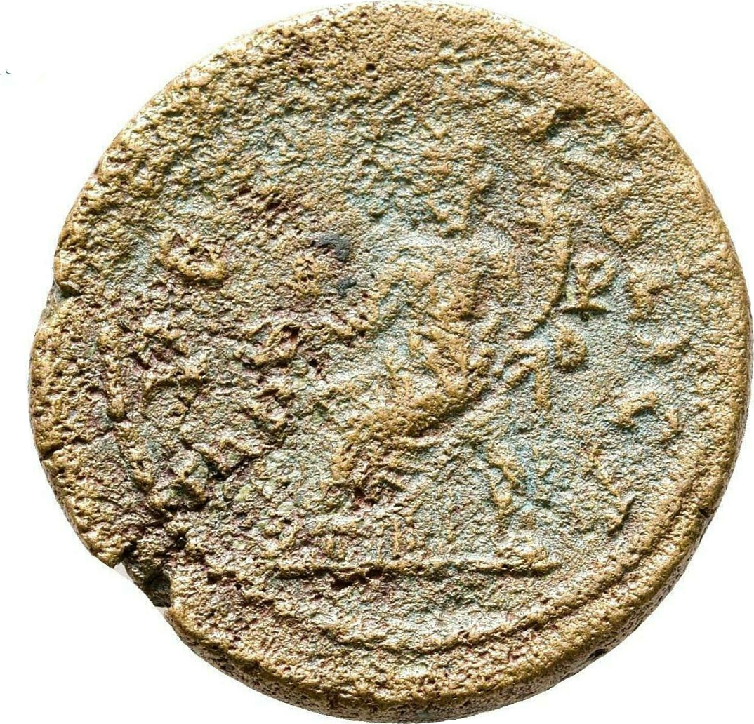 Tyche seated left, holding patera and cornucopia