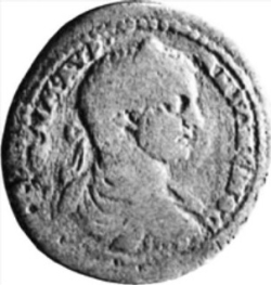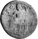 Zeus Larasios seated left, holding Nike on his extended right hand, left resting on sceptre