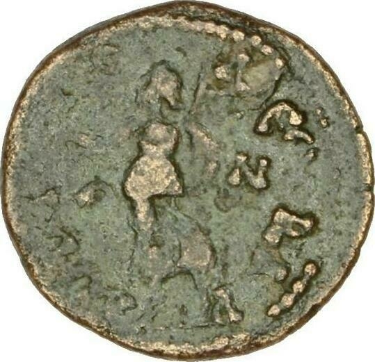 Nike standing left, holding wreath and palm