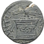 garlanded altar, on which eagle standing left, head right, wings spread, with serpent in claws