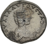 draped bust of Julia Domna, right, holding out poppy