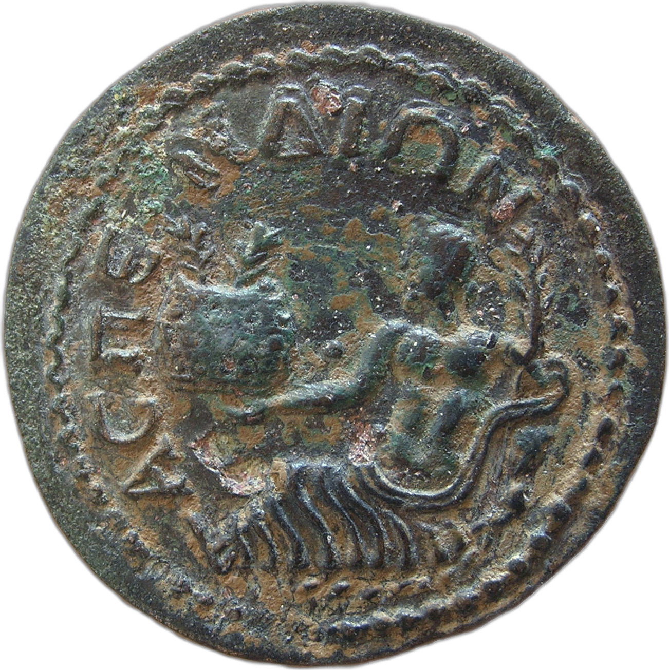 river-god Eurymedon reclining left holding prize crown in extended right and reed in left, which rests on urn from which water flows