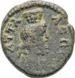 draped bust of Sarapis, right, wearing kalathos