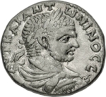 laureate, draped and cuirassed bust of Caracalla, right, seen from rear