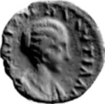 Tyche standing facing (with kalathos), head left, holding patera and cornucopia