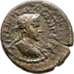 laureate, draped and cuirassed bust of Geta, right, seen from rear