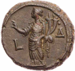 Reverse design Homonoia standing left, raising right arm and holding double cornucopia