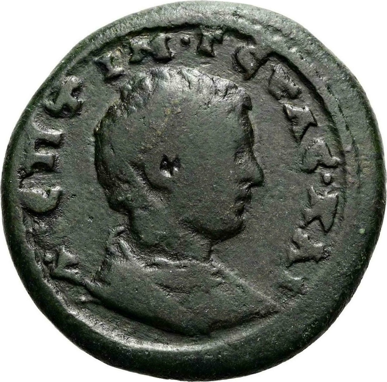 bare-headed cuirassed bust of Geta, right, seen from front