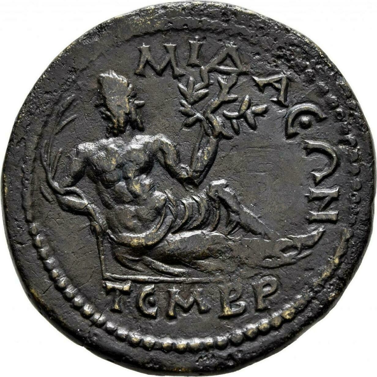 river god (Tenbros) reclining right, holding reed and branch