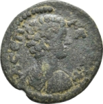 bare-headed head of Geta, right