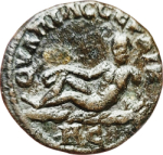 river god Oiskos reclining left, looking right, his right arm resting on his right knee and his left resting on urn?