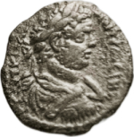 laureate, draped and cuirassed bust of Caracalla, right, seen from rear