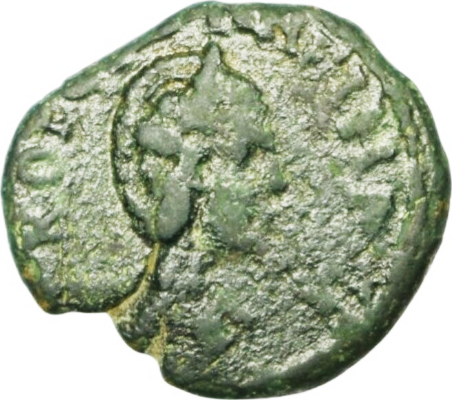 Tyche(?) standing left, holding rudder(?) and cornucopia