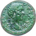 Heracles nude standing facing, looking left, holding lion skin on his right arm, resting on club with his left