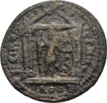temple with four columns, enclosing Mên holding sceptre