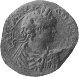 Tyche standing facing head left holding rudder in right and cornucopia in left |