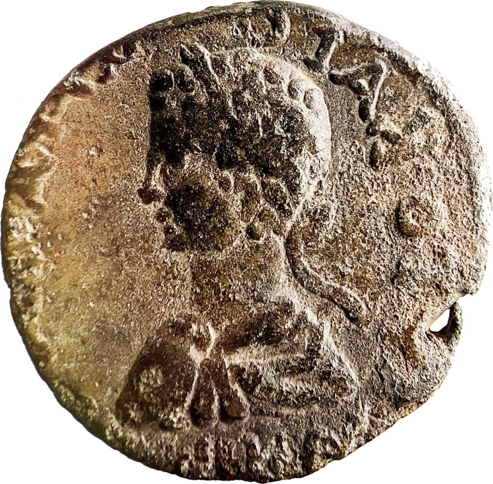 bare-headed, draped and cuirassed bust of Caracalla, left, seen from rear