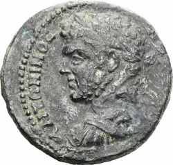 laureate, draped and cuirassed bust of Caracalla, left, seen from rear