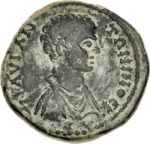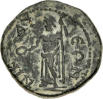 Zeus standing fac ing, head left, holding patera and resting on sceptre