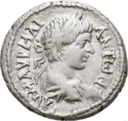 laureate and draped bust (unbearded) of Caracalla, right, seen from rear