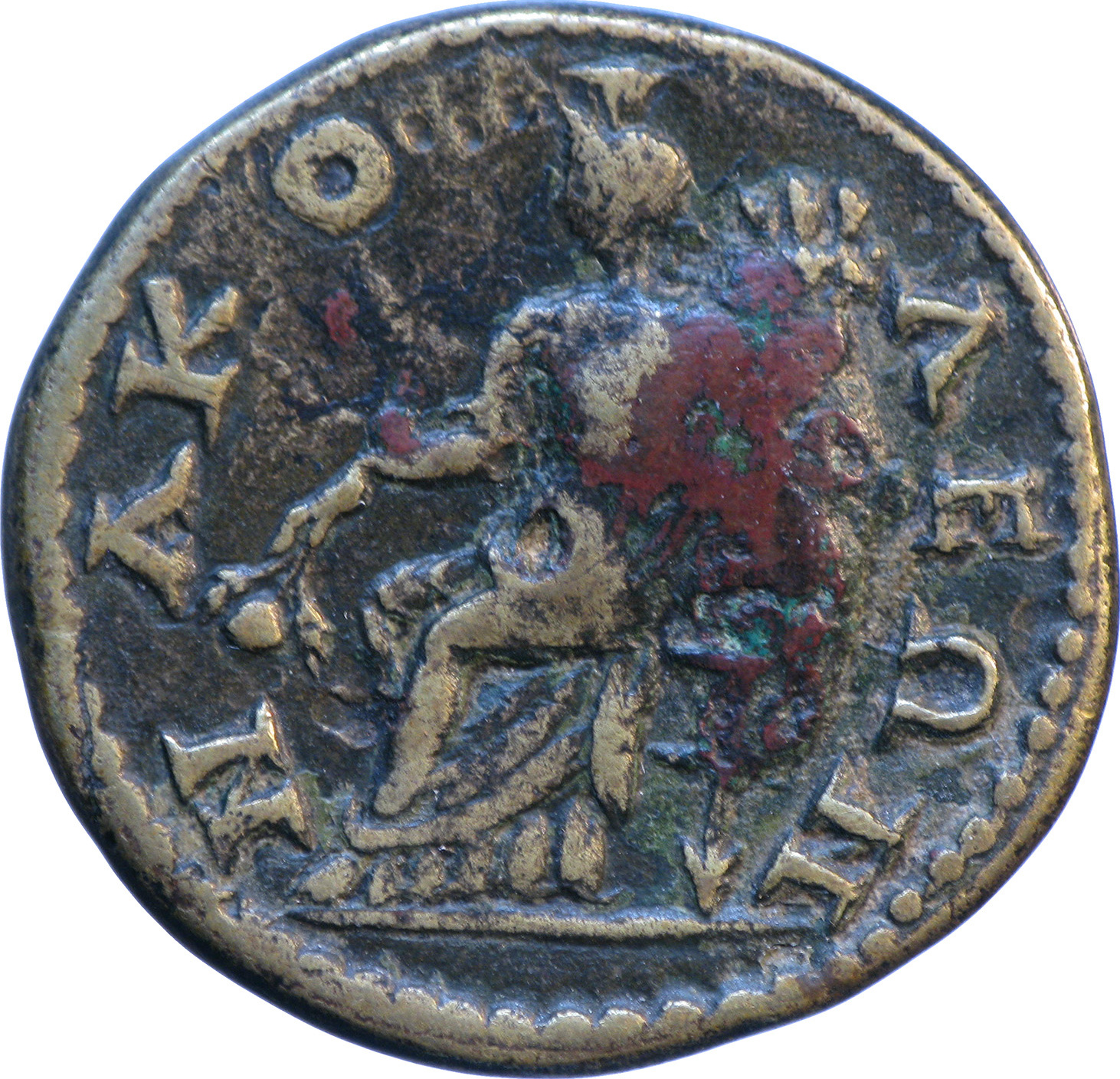 Demeter seated left, holding ears of corn and cornucopia